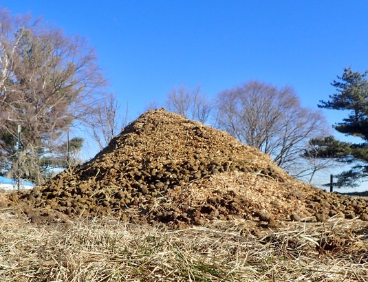 Farmer Rich doesn’t want us using the manure cart while it’s so cold, because frozen poopies might break it. When the mountain gets big enough, he’ll get it with his bulldozer! 🐎