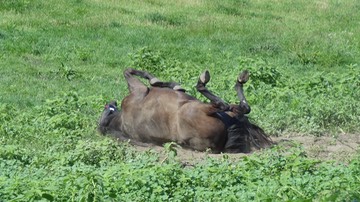 Pick your Caption: (1) Horse plays possum. (2) Francis proves that cows aren't the only thing you can tip*. (3) Chavez shows us that horses don't have to sleep standing up, especially when there's room to lay down and a warm March sun in which to bask.