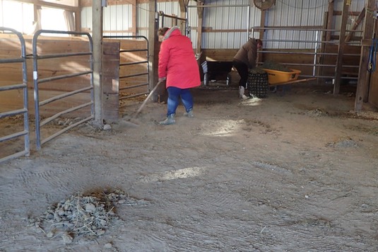 While we’re eating, Mary and Mara are cleaning our poopies and putting out our hay: