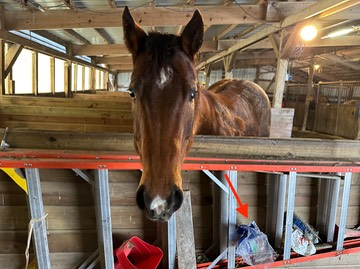 Iris says, “Good morning to you, too! I’m afraid I have to report that someone (Stormy) made a poopie in our feed bin.”