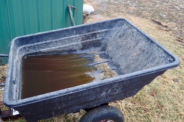 It absolutely poured overnight. Just look at all the water in the manure cart: