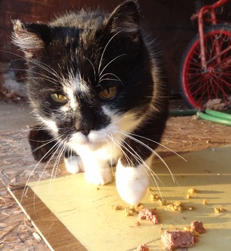 so he gets his breakfast a good distance from the rest of the kitties.