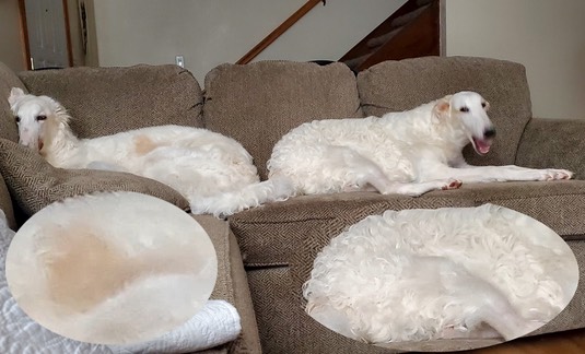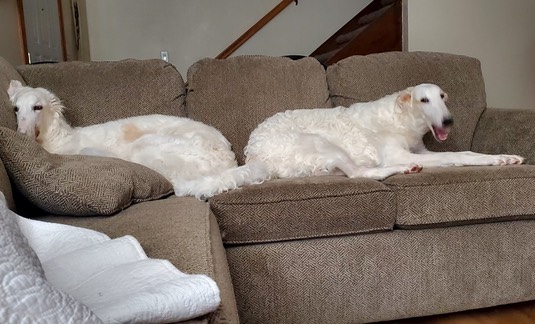 And here’s a picture from our Mary in Mason City ❤️. Which borzoi is Anya and which is Sophie? They both look the same size:
