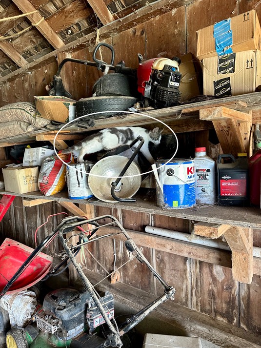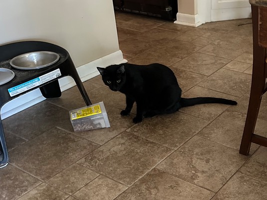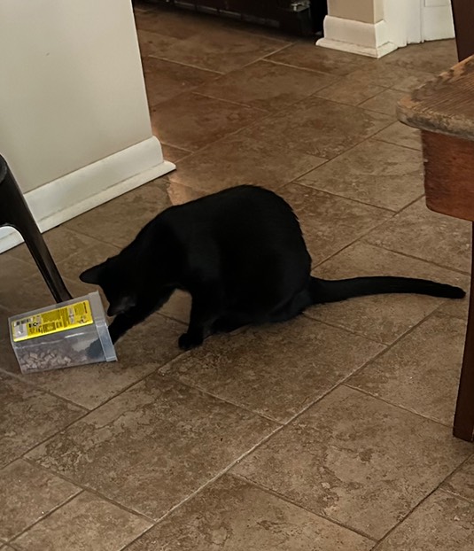 Finally, indoor cat Greg is helping himself to the cat treats, that he managed to knock off a dresser that was on the other side of the house!