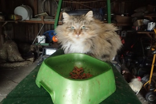 Alfred is seeking shelter in the duck garage. It’s the first time he’s been in there: