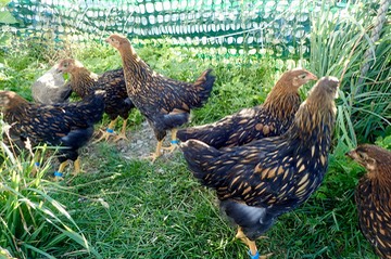 The hot weather is back, and the chicks are up in the cool grass, and exploring the fence: