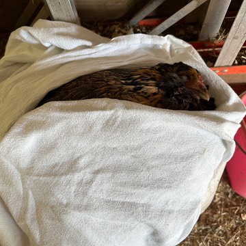 This morning she was awake, but didn’t leave the coop. Ann wrapped her in a blanket, but she soon passed away in her arms.