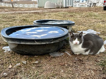 “Good morning! The duck tubs make a great blind for hunting sparrows or starlings. If I’m patient, some bird will get thirsty and careless.”