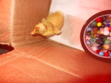 proved today that I can jump out of my box! (The marbles in the water dish keep me from going in over my head.)