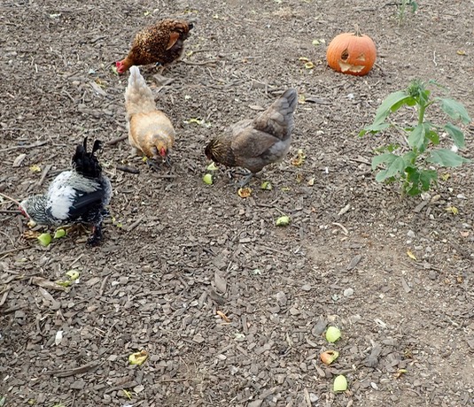 The chickens like apples, whether they are green or ripe: