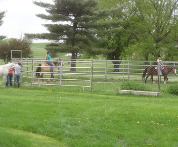 Stormy and Mary take their riding lesson from Joe.