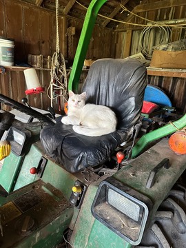 Betty says, “Good morning from the tractor garage! We’re all grateful that it’s a little cooler and less humid.”