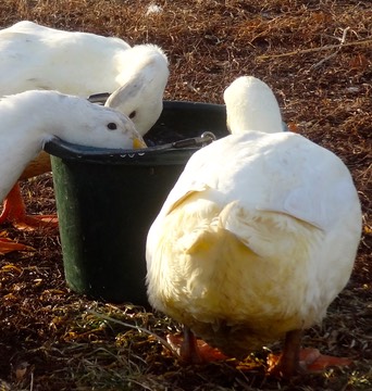 Sunny and 51℉! The ducks had worms and water outside:
