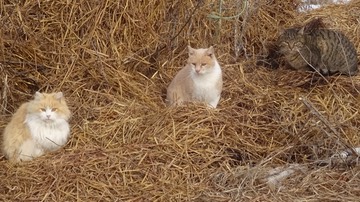 Kitties in the straw 😺Hee-haw, Hee-haw 🐴