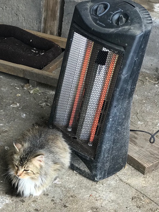 Buttons walked onto our farm, January 16, 2021, looking for food and warmth, and made herself at home.
