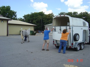 Mary leads Stormy to the stable at Blackhawk College for his first day at school!